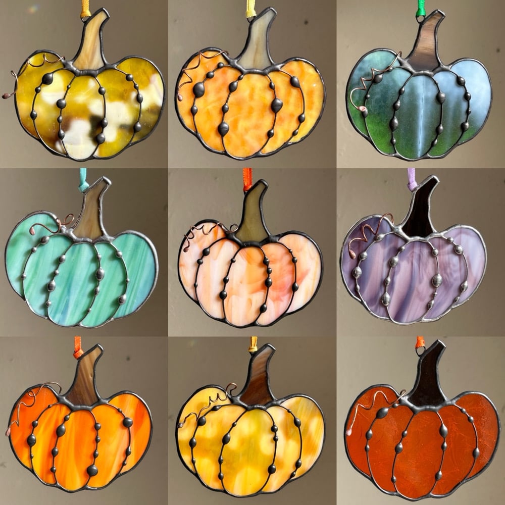 The harvest is upon us in all its autumnal colors, and I’m often mesmerized by the color tones found on gourds! Each texture carefully selected with this in mind, I also added solder bumps to the wires that shape it’s segments, and a trailing copper vine!