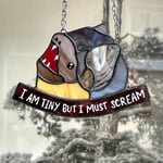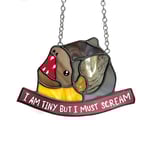 A unique blend of neutrals and textures were chosen for this piece to make it as accurate to the real thing as possible. So many little details about this one contribute to its cuteness.. held up by a banner-style text that was hand painted on purple glass.