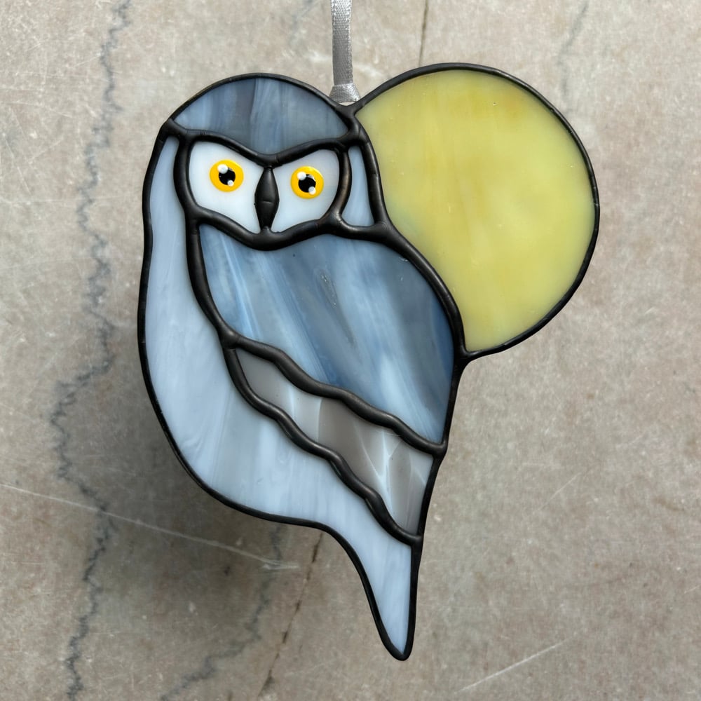 Creatures of the night could hardly be more cute! The use of varying neutral tones are accented by a mottled moon in the background. Foil overlay beaks and painted eye details bring their faces together as the focal point.